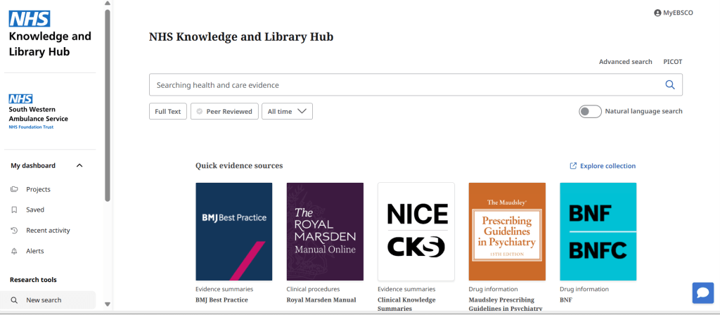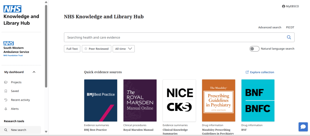 Whilst it is advisable to search the databases above for more detailed and systematic searches, the NHS Knowledge and Library Hub can be used for more simple searches to find a couple of papers on a simple topic.
