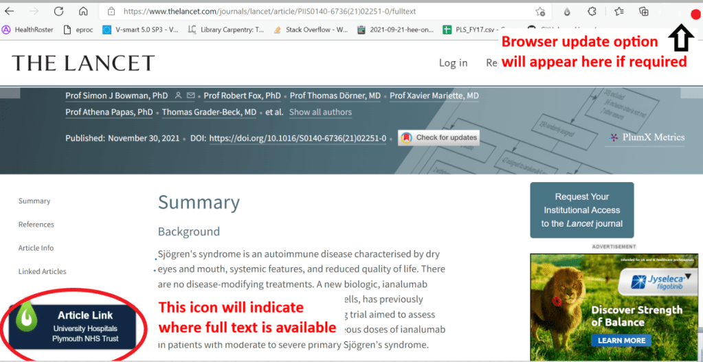 All work PCs and laptops in UHP and Livewell Southwest now have a faster route to access full text articles, @UHP_IMT have made this available on your machine to link to @discoverylib holdings