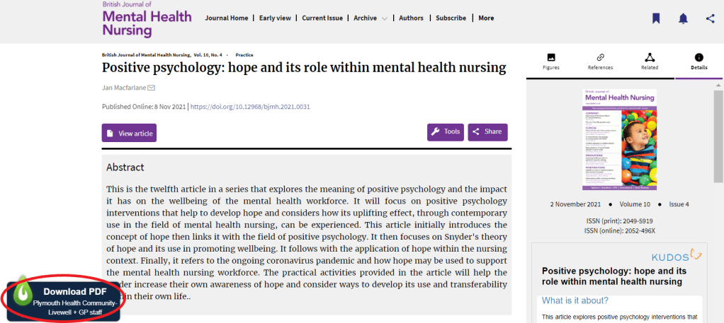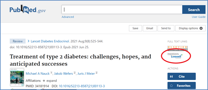 - PubMed institutional link for Livewell SW includes a trust logo link on the right-hand side of each record to check local article availability