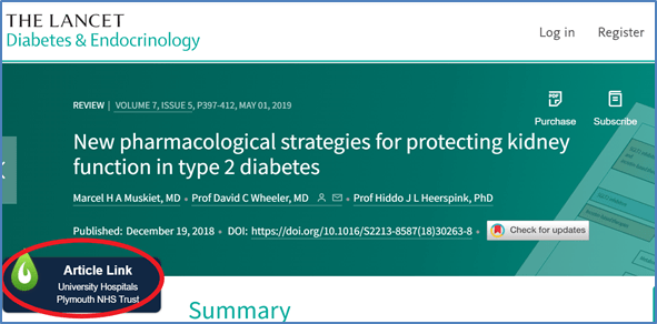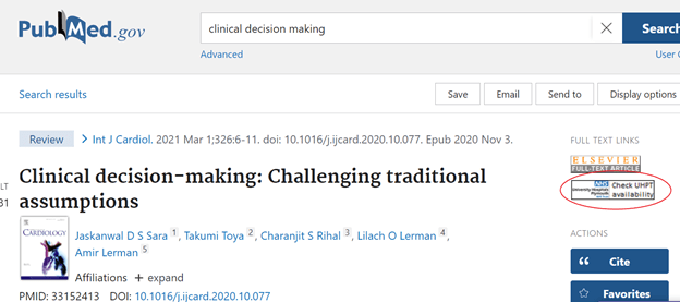 - PubMed institutional link for UHP includes a trust logo link on the right-hand side of each record to check local article availability